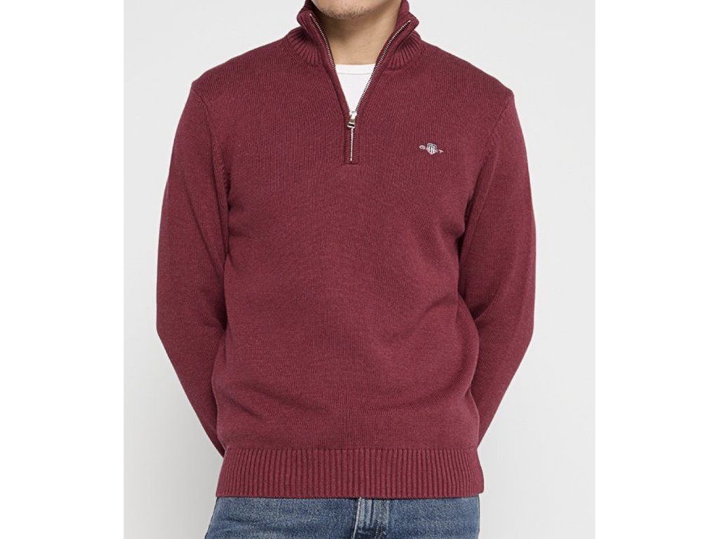 Bordó (plumped red) svetr, malé vyšité logo, half zip. Složení: 100% bavlna. Pletená textura.