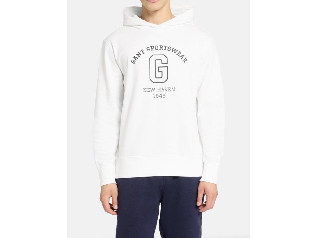 Smetanová mikina s kapucí, bez klokanky. Potisk logo.