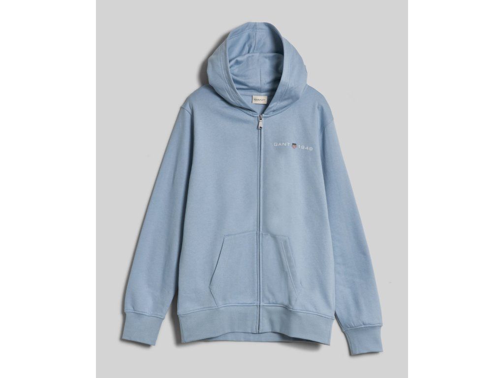 Béžová mikina s kapucí, s klokankou, na ZIP. Potisk logo.