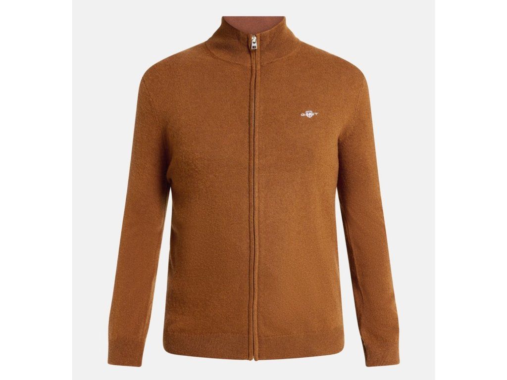 Hnědý, extrafine lambswool, full zip