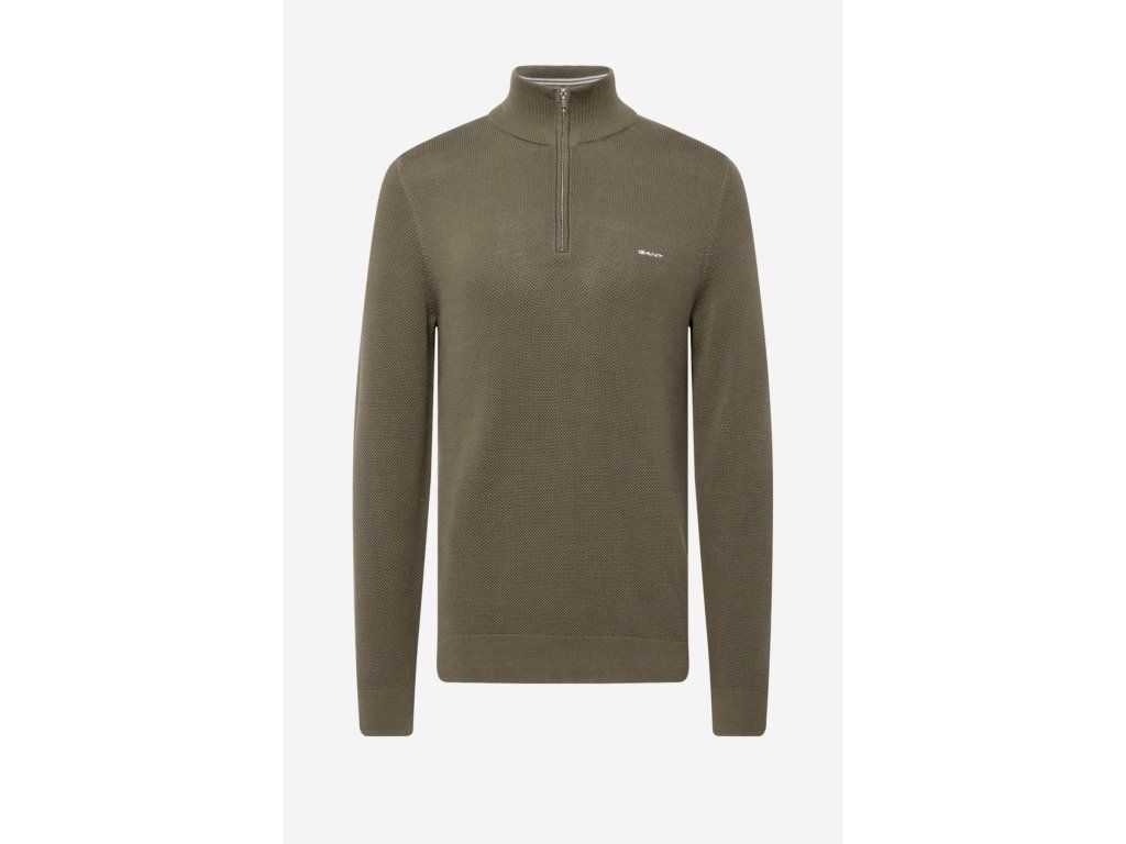 Zelený (Juniper green) svetr, malé vyšité logo, half zip. Složení: 100% bavlna. Pique (pike) textura.