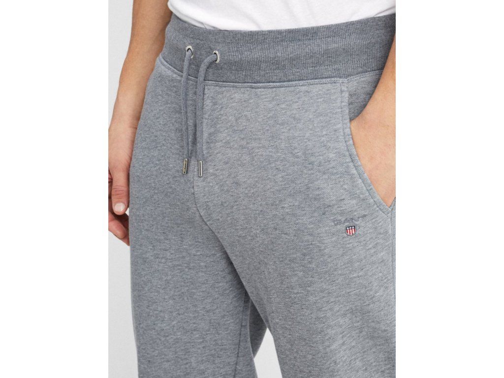 Pánské tepláky GANT, šedá barva, malé vyšité logo. Dvě postranní kapsy, 1 kapsa vzadu. Nohavice ukončeny gumou. Silná guma v pase. Rozměry: vel XXL: šířku pasu 48cm, délka nohavic 105cm. Vel 3XL: pas 51cm, nohavice 107cm.